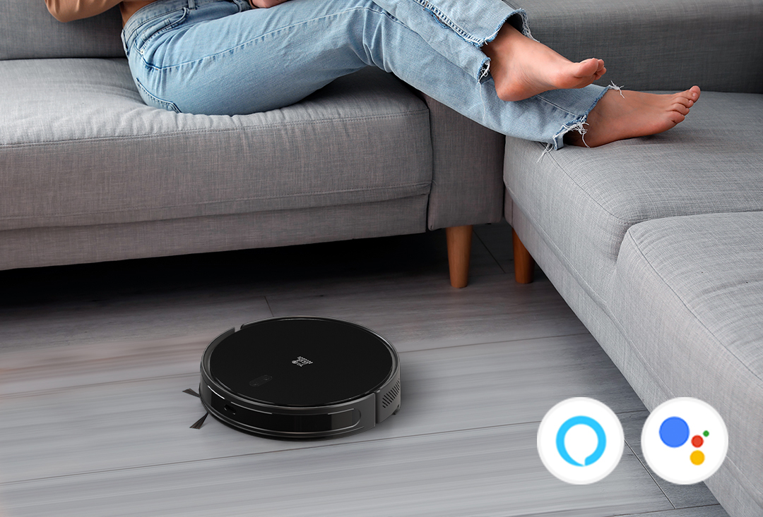 La aspiradora robot es compatible y controlable con los asistentes de voz Alexa y Google assistant.
