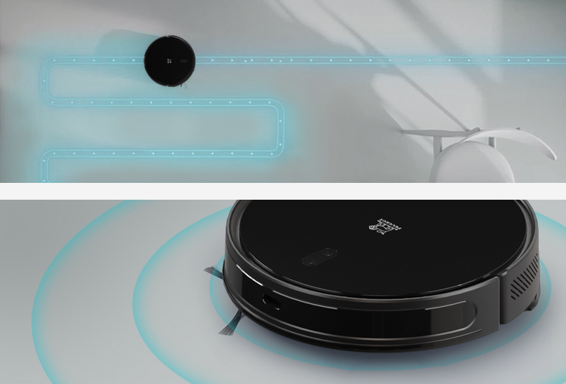 El robot tiene un sistema de navegación láser con el que realiza un mapa de su recorrido identificando los lugares por donde ya limpió. De esta manera puede optimizar el recorrido realizando una limpieza rápida y eficiente.