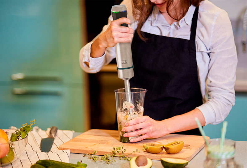 Cuenta con batería de litio recargable mediante puerto USB-C, lo que la hace maniobrable dentro de la cocina sin depender de un enchufe.