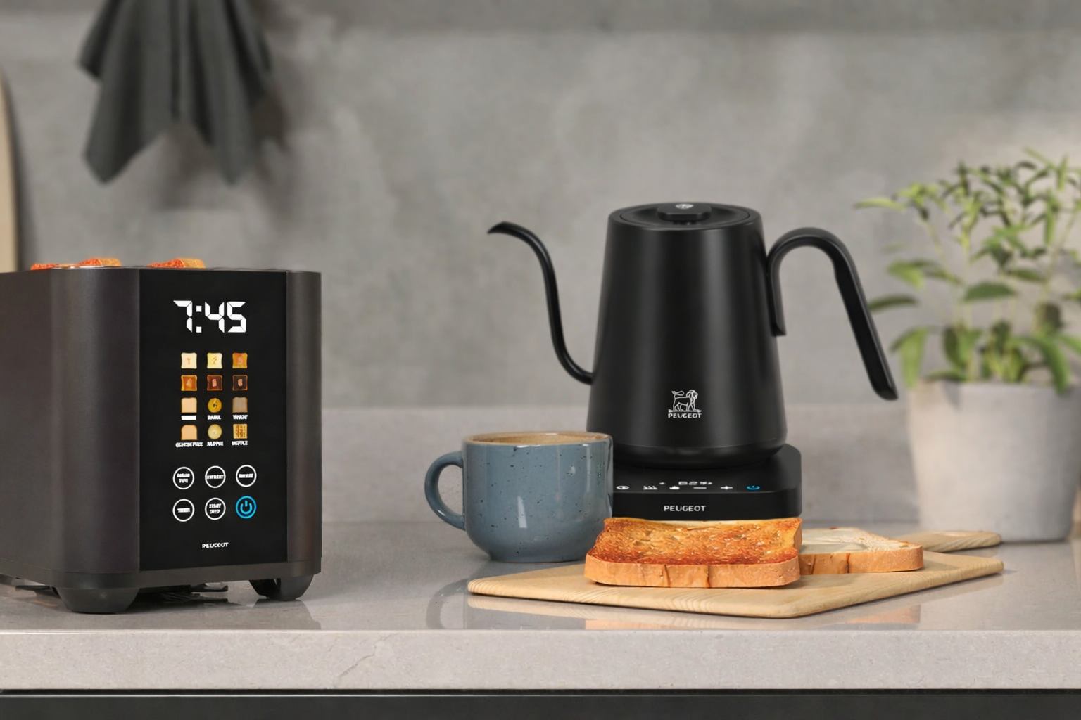El Combo Doré reúne la pava eléctrica Brest y la tostadora digital Limoges Black para transformar cada mañana en un momento de precisión y estilo. Control exacto de temperatura para tu café o té, y el tostado perfecto en cada rebanada.