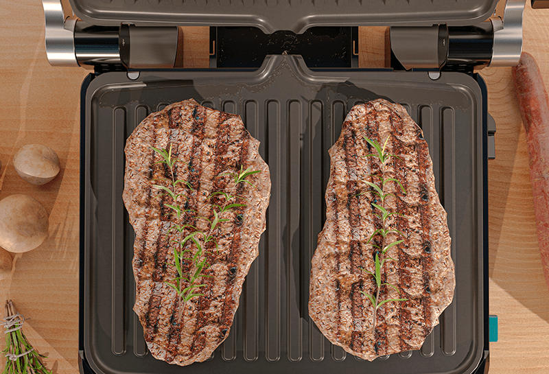Su diseño compacto y ángulo de apertura de 180º garantizan una cocción uniforme aplicando calor desde ambos lados para un grillado perfecto.