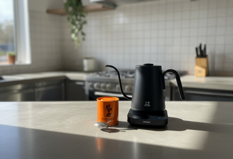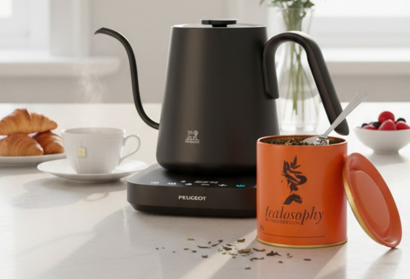 Su pico cuello de cisne da un hilo de vertido controlado que cuida hojas delicadas y extrae aromas de forma pareja; la función de mantener caliente sostiene el punto para servir sin apuro.